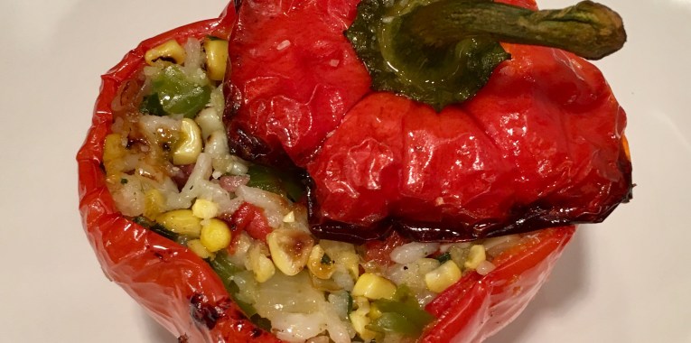 There is an abundance of fresh vegetables this time of year. This is the perfect time to combine sweet corn with fresh herbs in a bright colorful bell pepper. Enjoy!