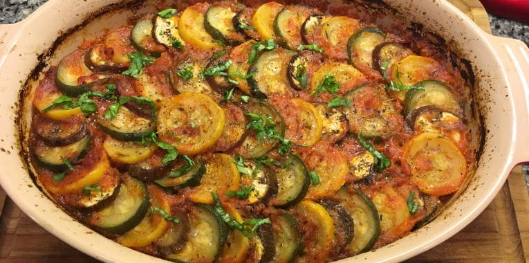 We had leftover summer zucchini and yellow squash so I decided to make a classic ratatouille. The Japanese eggplant is thinner and can be found at most asian markets. This is great for a vegetarian family meal. Enjoy!