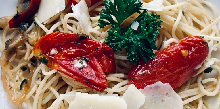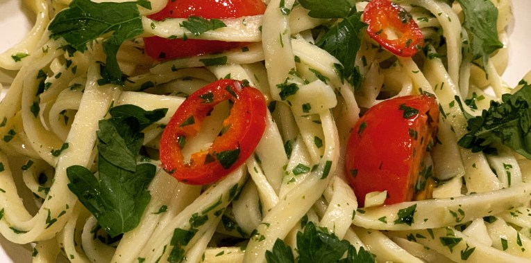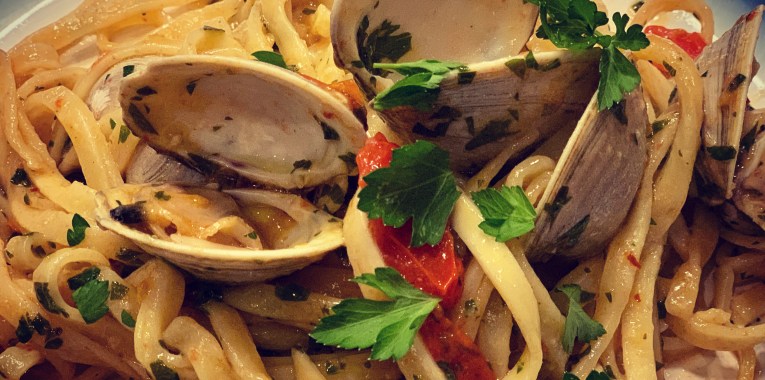 Great ingredients can make a simple recipe delicious. The fresh clams with cherry tomatoes and parsley add so much flavor to the olive oil and Prosecco. Such a elegant and satisfying dish.